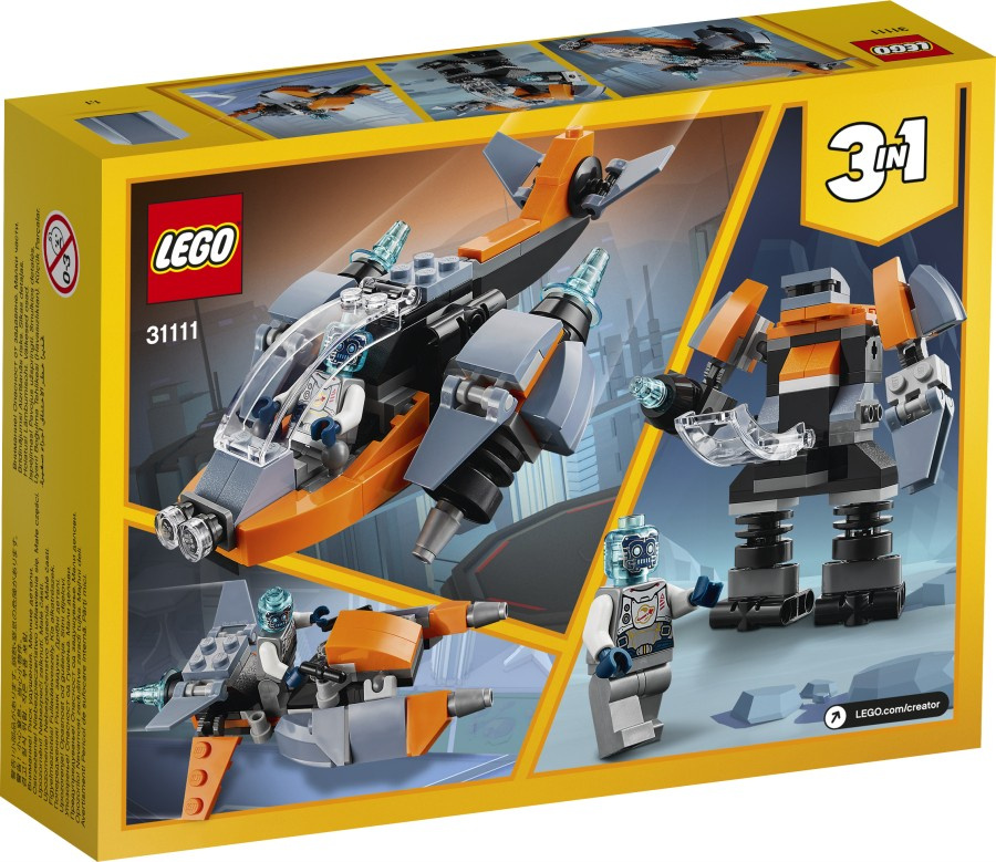 Wybierz się na poszukiwanie nowych planet z cyberdronem! Zajmij miejsce w kokpicie, odpal silniki i ruszaj na poszukiwanie niebezpiecznych przygód w towarzystwie minifigurki robota. Po wylądowaniu możesz przerobić pojazd na świetnego cybernetycznego mecha i kontynuować podróż, a potem zbudować z niego cyberskuter i popędzić do akcji! Ten niesamowity zestaw 3 w 1 to wiele godzin świetnej zabawy i budowania wszystkiego, co tylko podsunie Ci wyobraźnia.
