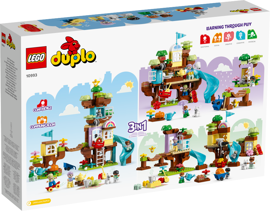 • Fajny domek na drzewie dla maluchów – dzięki zestawowi LEGO® DUPLO® Domek na drzewie 3 w 1 (10993) dzieci w wieku od trzech lat odkrywają korony drzew, rozwijają ekspresję i doskonalą umiejętności motoryczne