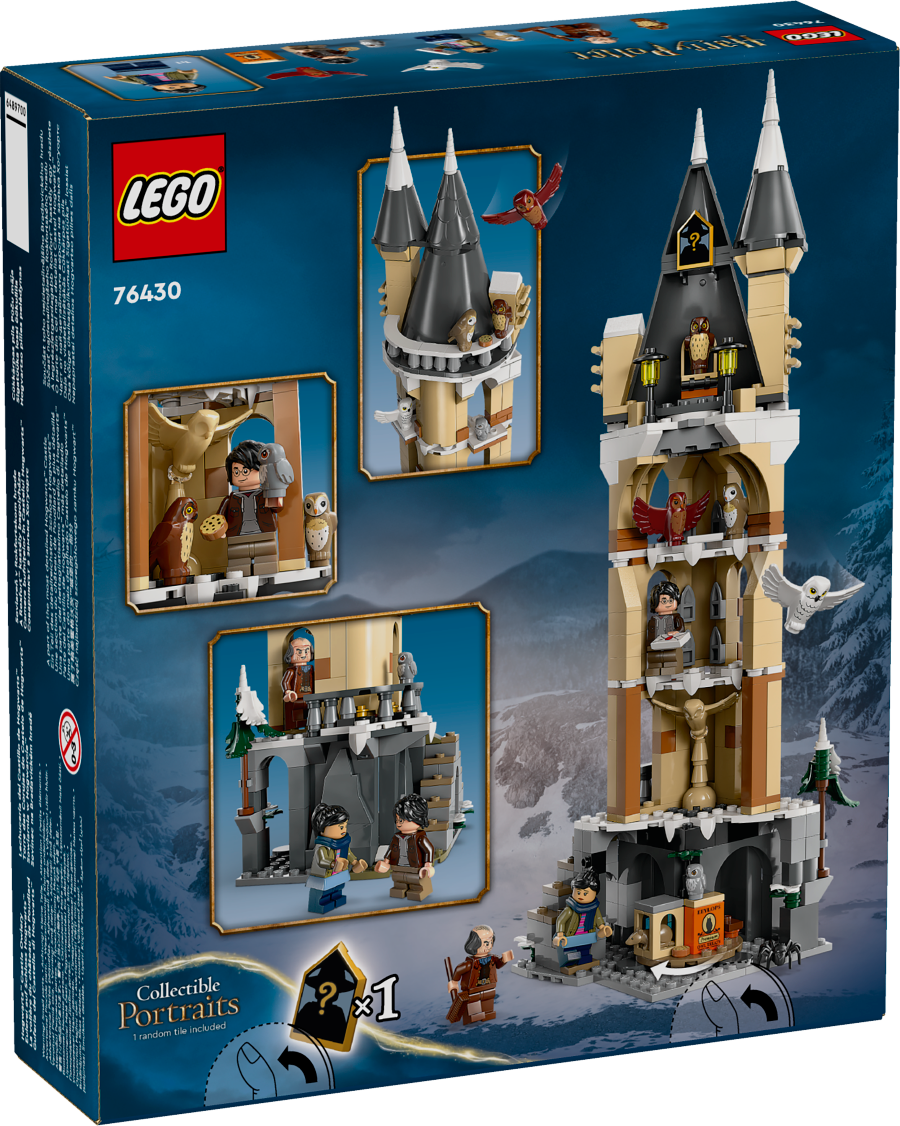 • Szczegółowy zestaw do budowania dla dzieci — zbudowana z klocków sowiarnia, w której mieszczą się sowy ze szkoły Hogwart™, to wieża z parapetami, na których sowy mogą siadać, posągiem sowy i innymi akcesoriami
