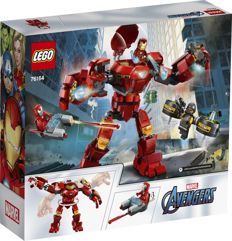 • W pudełku są cztery minifigurki: Iron Man, Rescue i dwóch agentów A.I.M., a do tego wielki, ruchomy Hulkbuster. Jest tam także świetna broń i plecak odrzutowy, więc bitwa może się rozpocząć od razu!